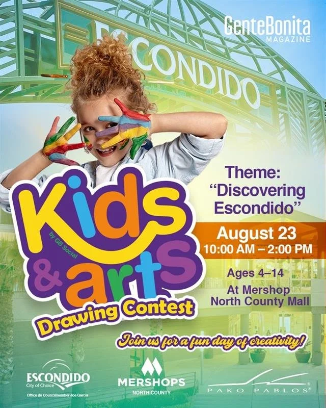 Get ready for a creative day of fun at our Kids & Arts Drawing Contest, presented in partnership with Gente Bonita Magazine, the City of Escondido, and Pako Pablos’ Studios!